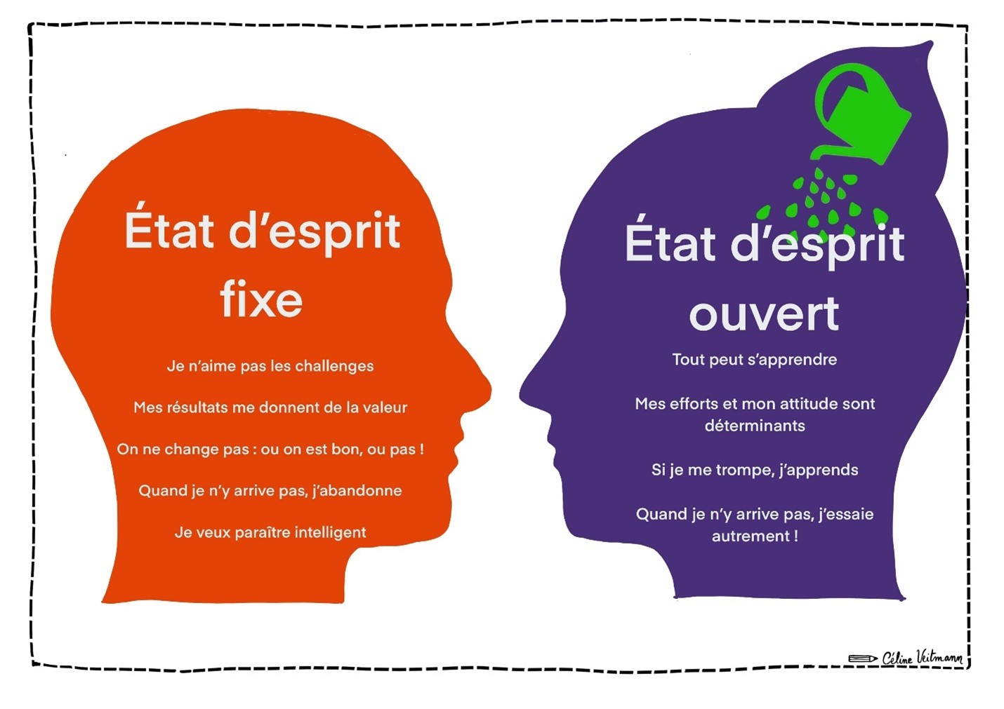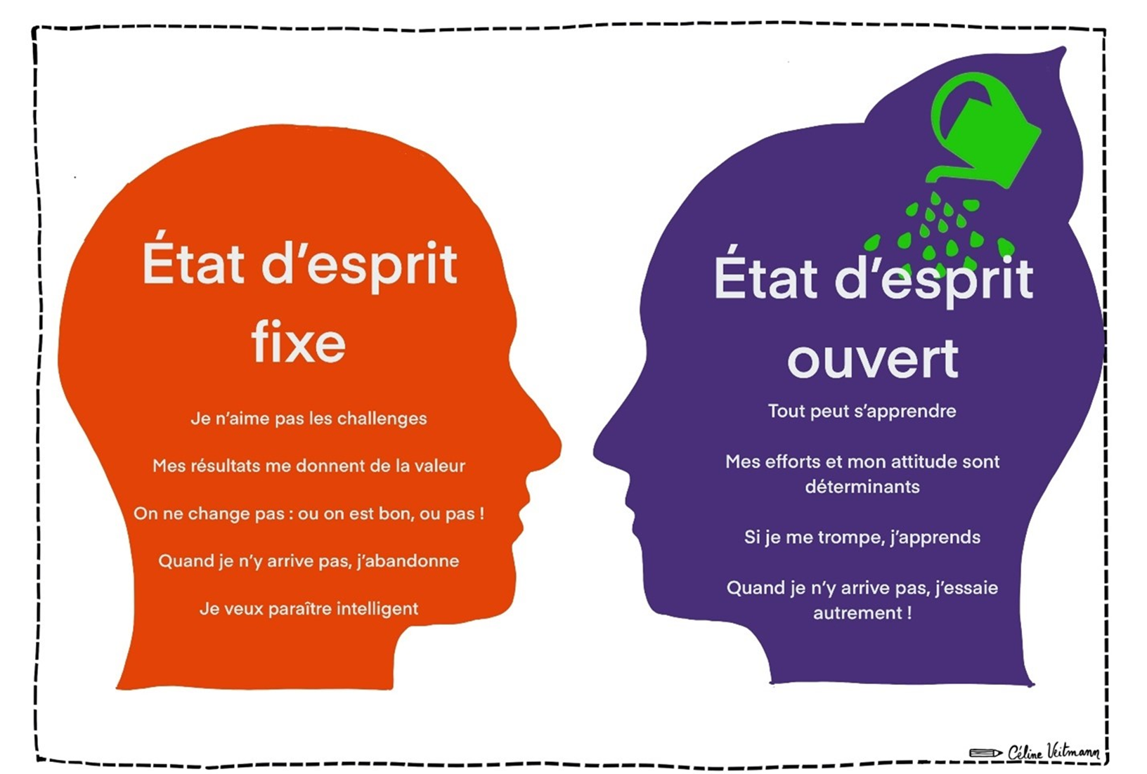 Il montre comment un état d’esprit fixe peut limiter l’action et l’évolution, tandis qu’un état d’esprit ouvert valorise l’effort, l’apprentissage et la persévérance.