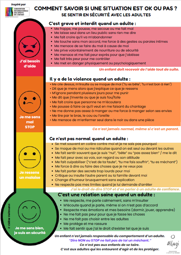 C’est pour cela que Céline Veitmann a créé cet outil simple pour aider les enfants à reconnaître ce qui est OK… et ce qui ne l’est pas dans une relation avec un adulte.