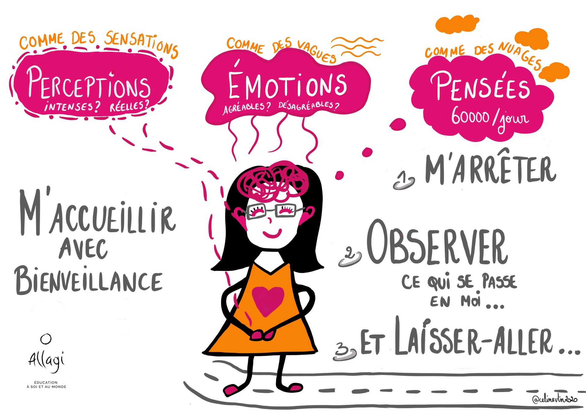 Au centre, l’accueil des émotions rappelle que reconnaître ce que l’on ressent est une étape essentielle pour avancer.